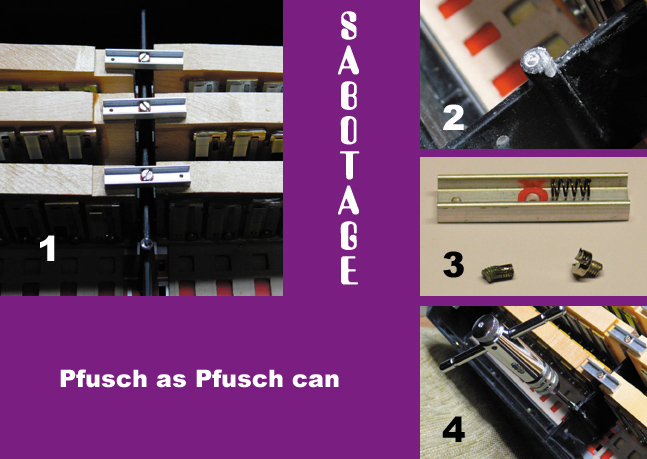 (1) Hier hat jemand mit "Schrauben-dicht-und-fest" manipuliert und dadurch die Schrauben richtig